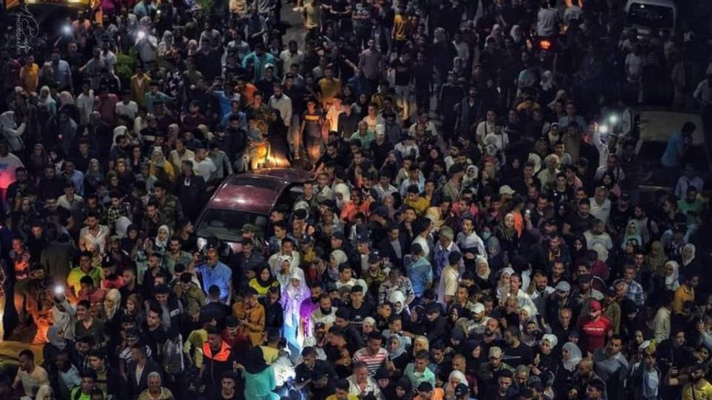 Families assembled in the “President’s Bridge” area, awaiting the arrival of buses carrying people who have been held for years in Syria’s infamous prisons, many for participating in the 2011 protests against President Bashar al-Assad.