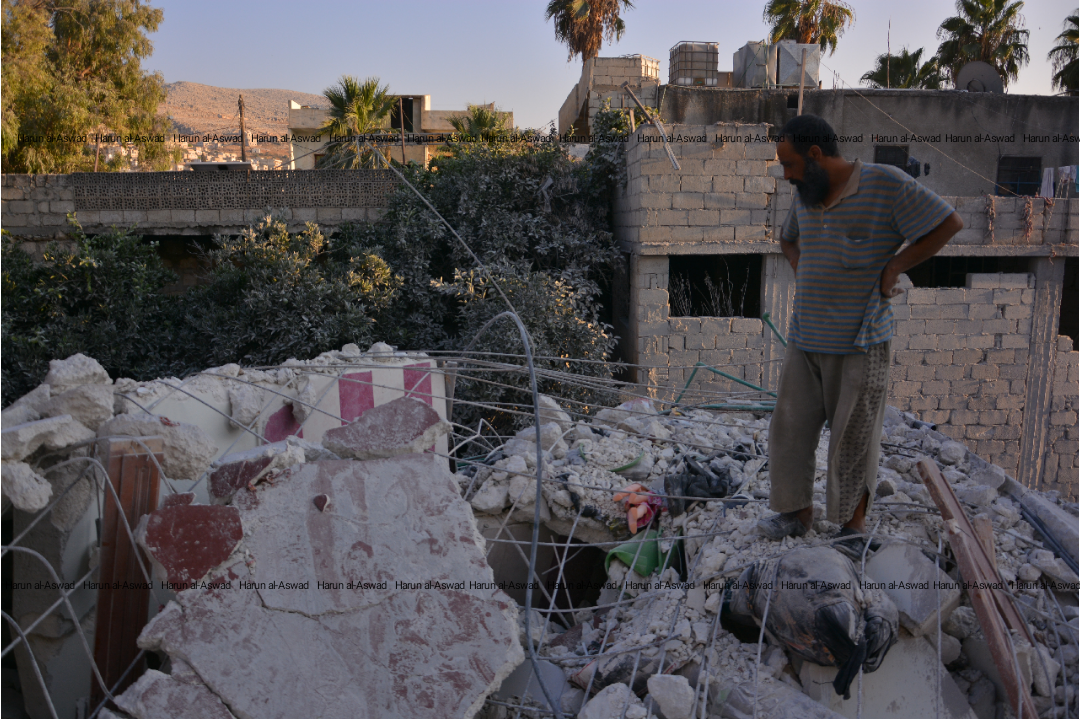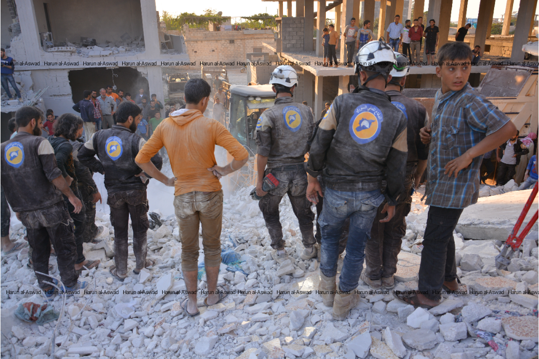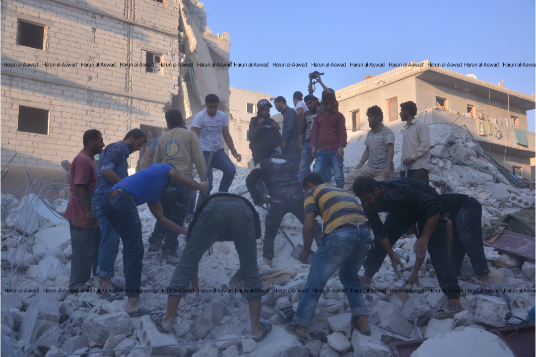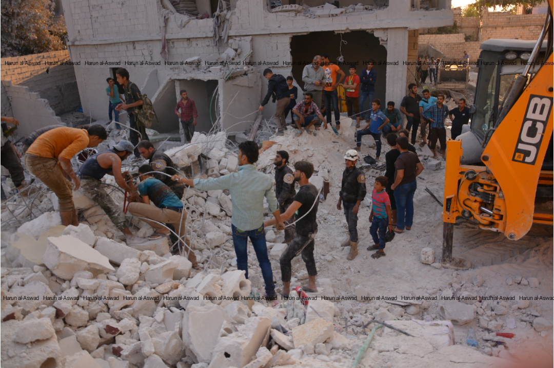 29 September 2017 | Several civilians were killed under the rubble of their concrete houses, which were completely destroyed by Syrian air strikes on the city of Harem, west of Idlib, Northern Syria. The pictures show rescue teams searching for survivors and civilians standing over the ruins of their homes.