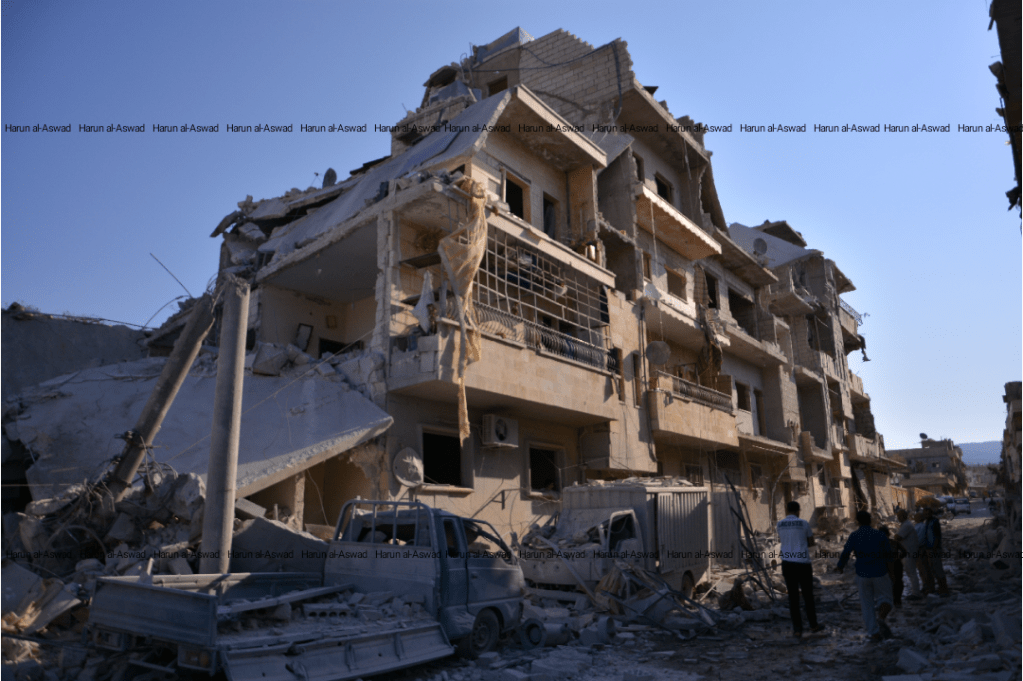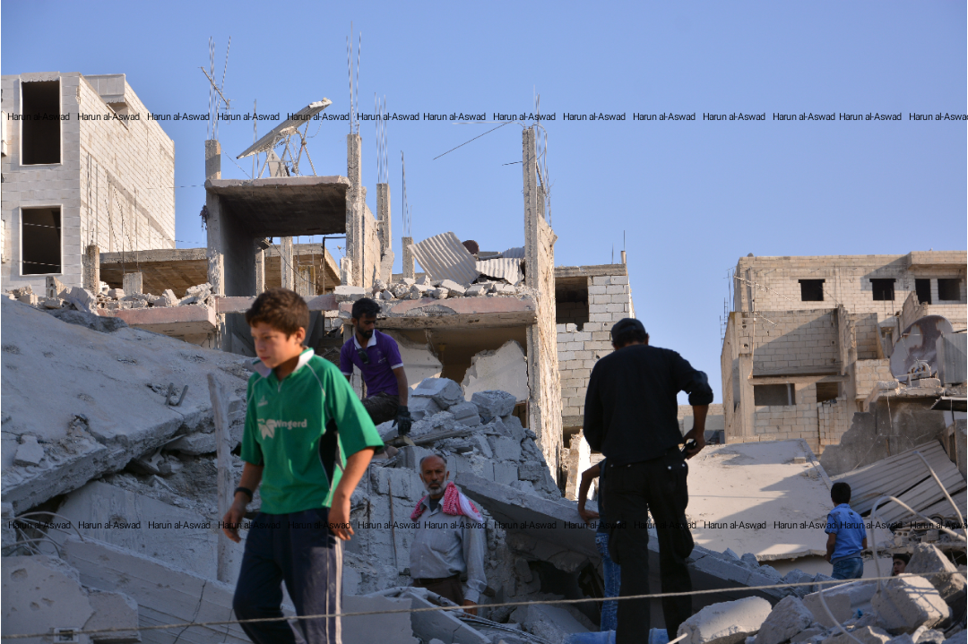 30 Sep 2017 | A Syrian warplane dropped all its missiles in the city of Armanaz, west of Idlib, Northern Syria, killing at least ten civilians and destroying tow residential avenue. This attack was reported to SMART News Agency, check it out here. It is the first video on the page