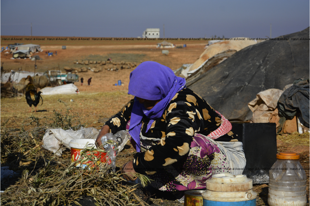 26 Dec 2017 | Displaced women from western Aleppo to eastern Idlib province , in north Syris. These women lost their husbands during the war and are working to support their children by relying on herding livestock and relief organizations. The stories of these women were reported to SMART News Agency.