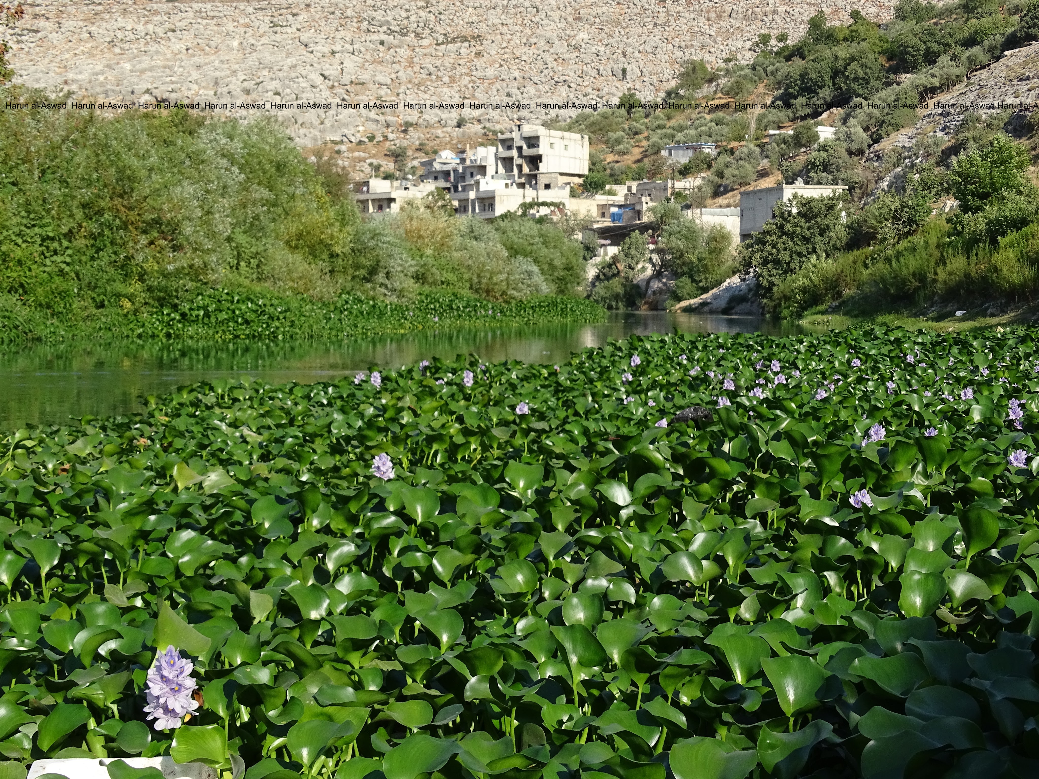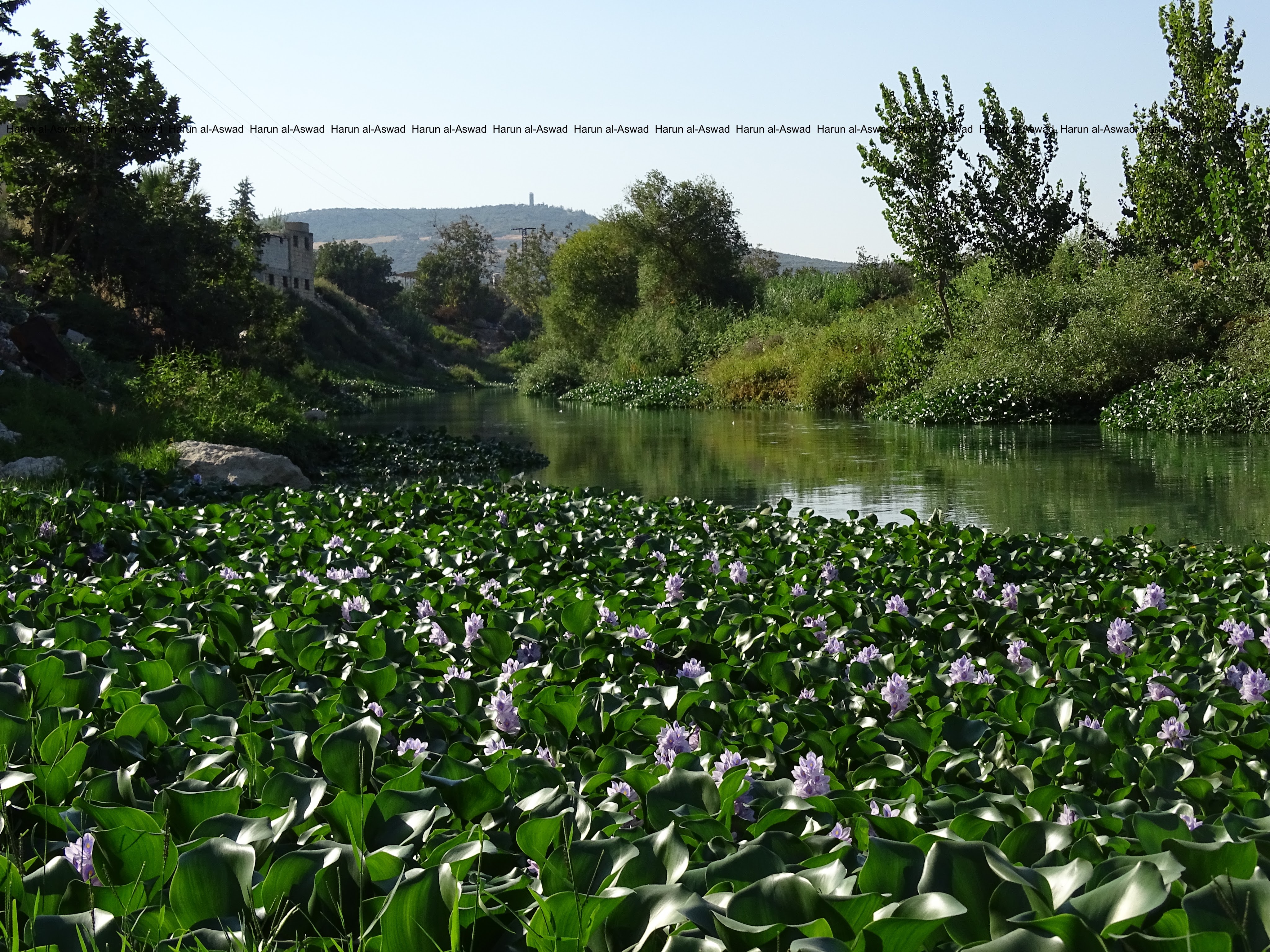 The river is mainly used to irrigate farmland and fish in Idlib Province. Its waters were greatly affected during a decade war in Syria. The plant shown in the picture looks beautiful, but it consumes very large amounts of river water and leads to a decrease in its levels. (Photos in 1 September 2017)