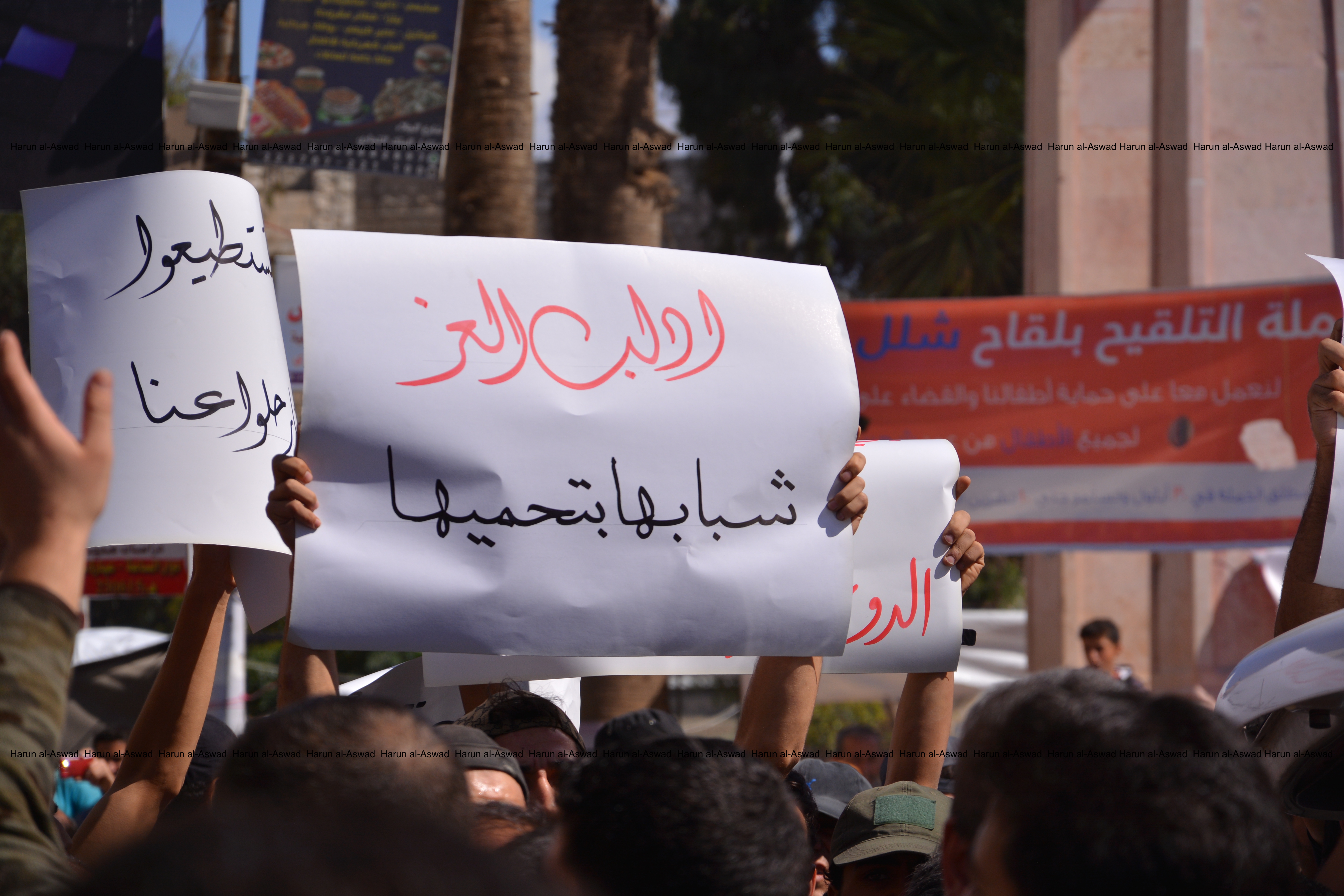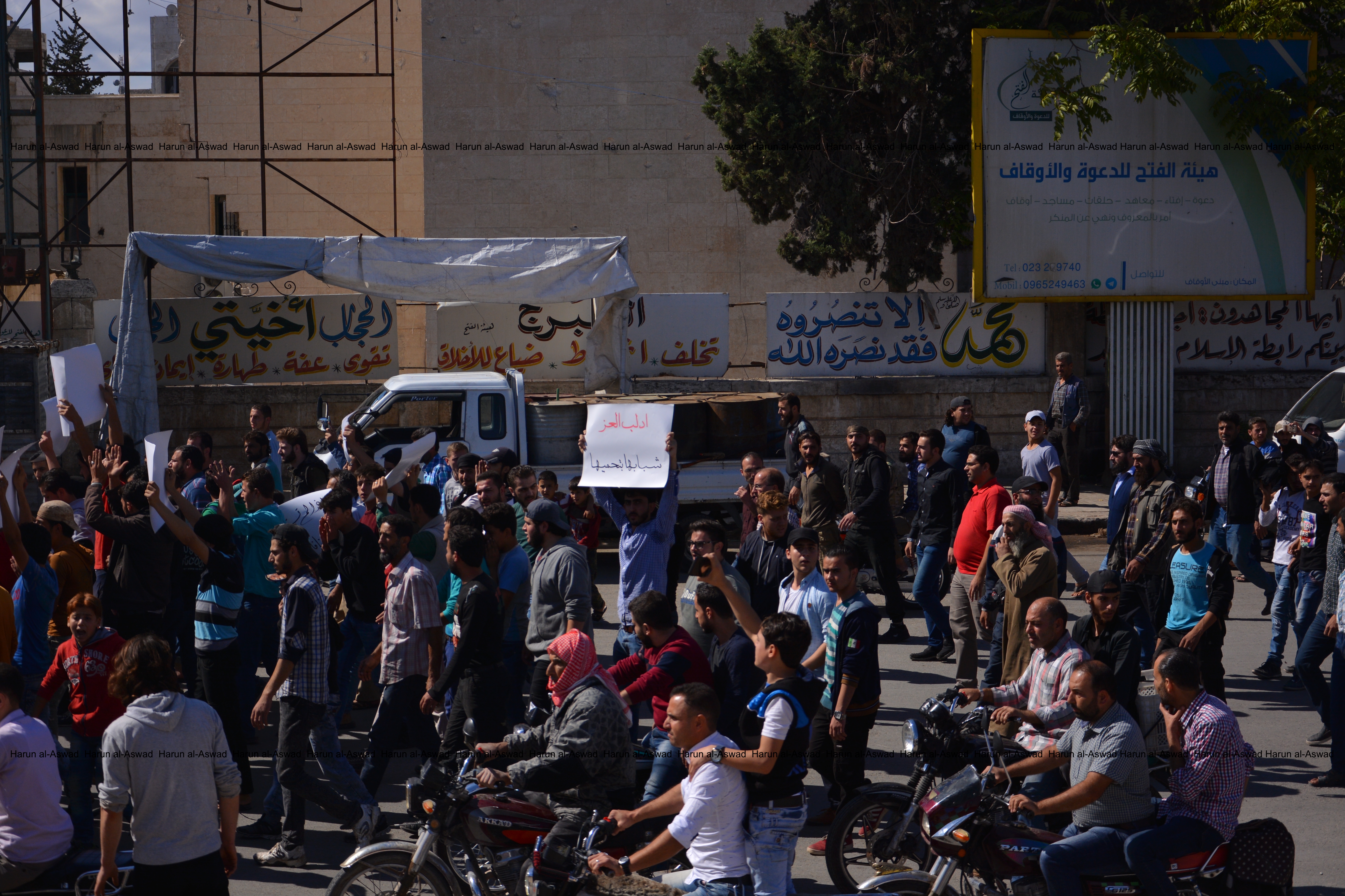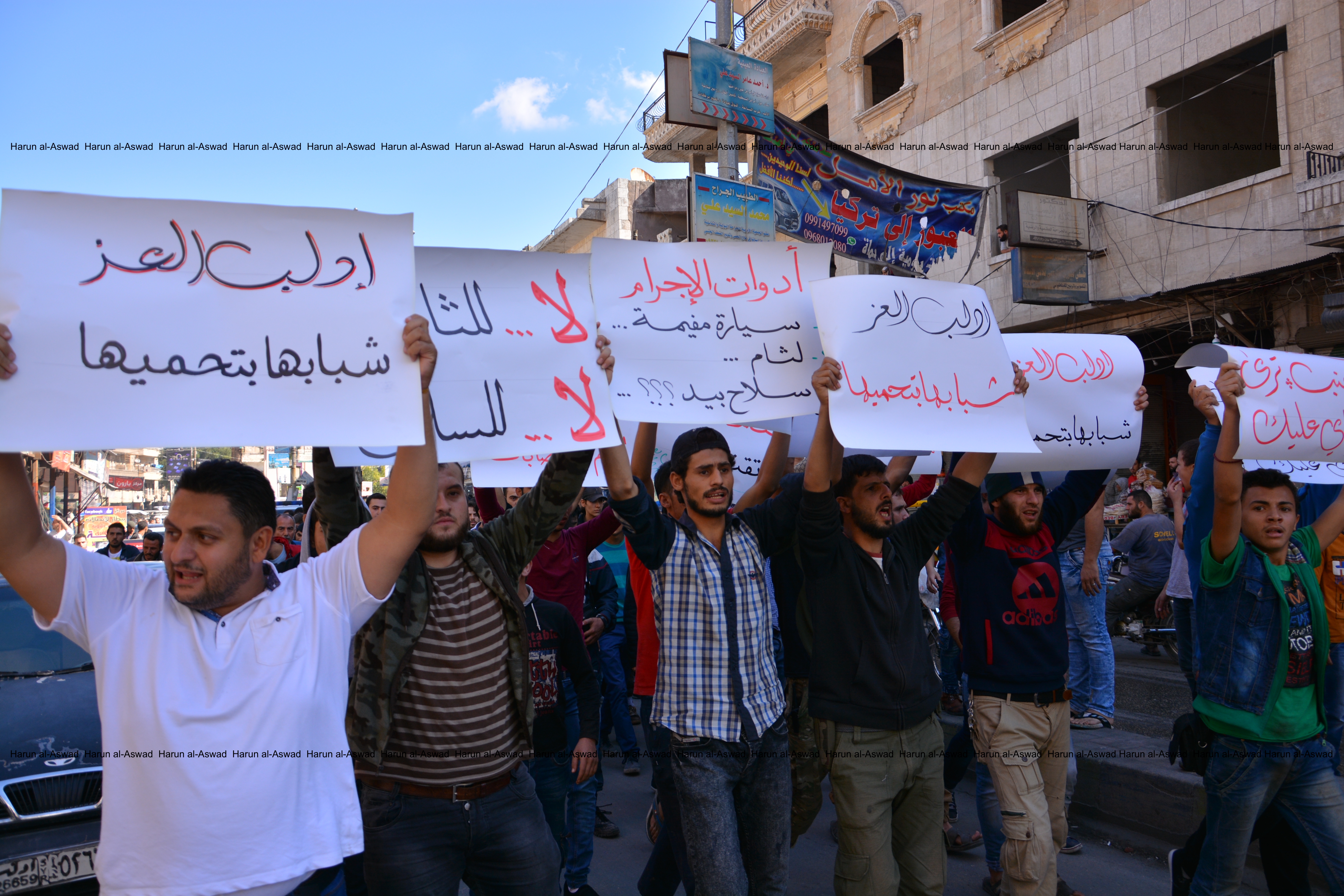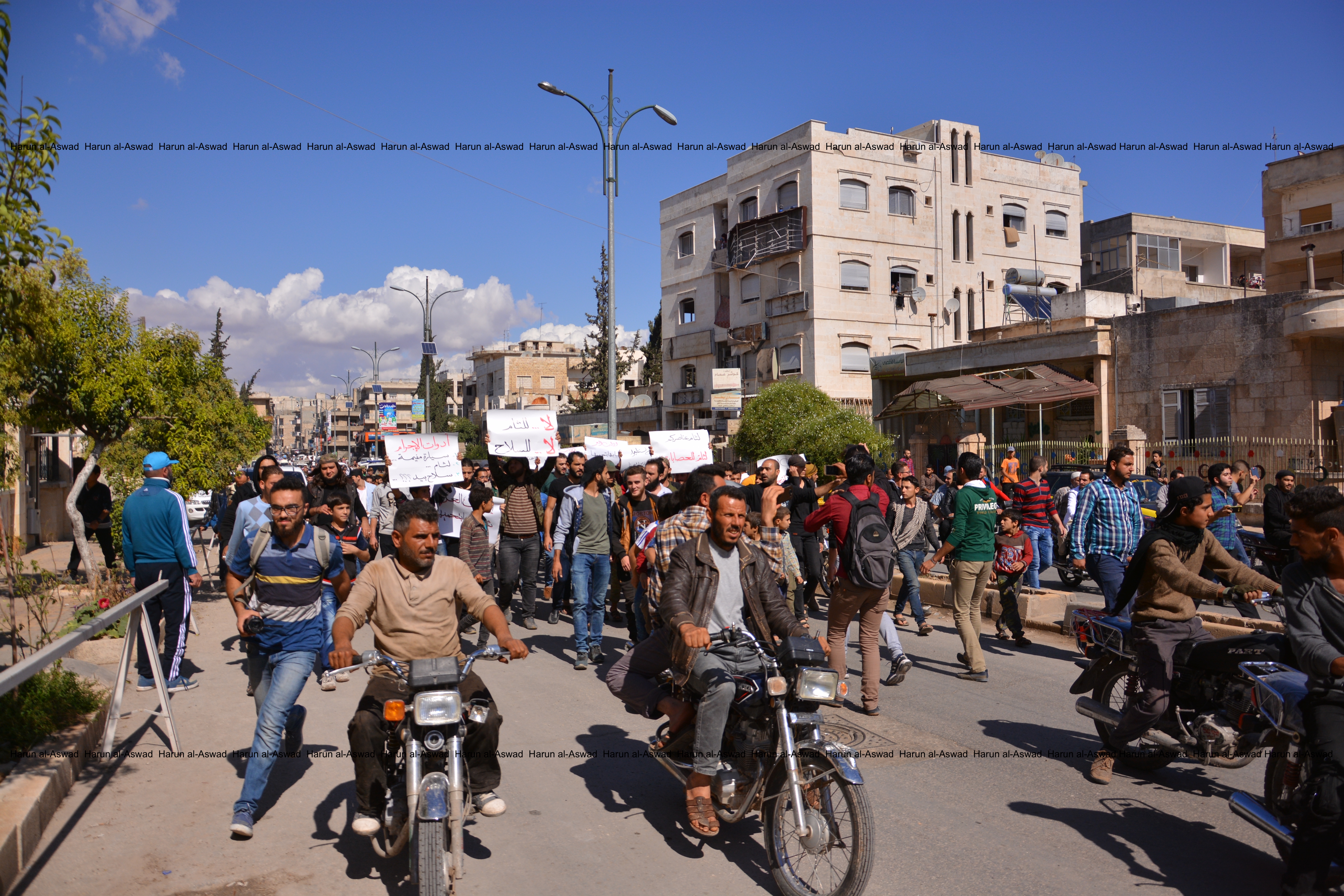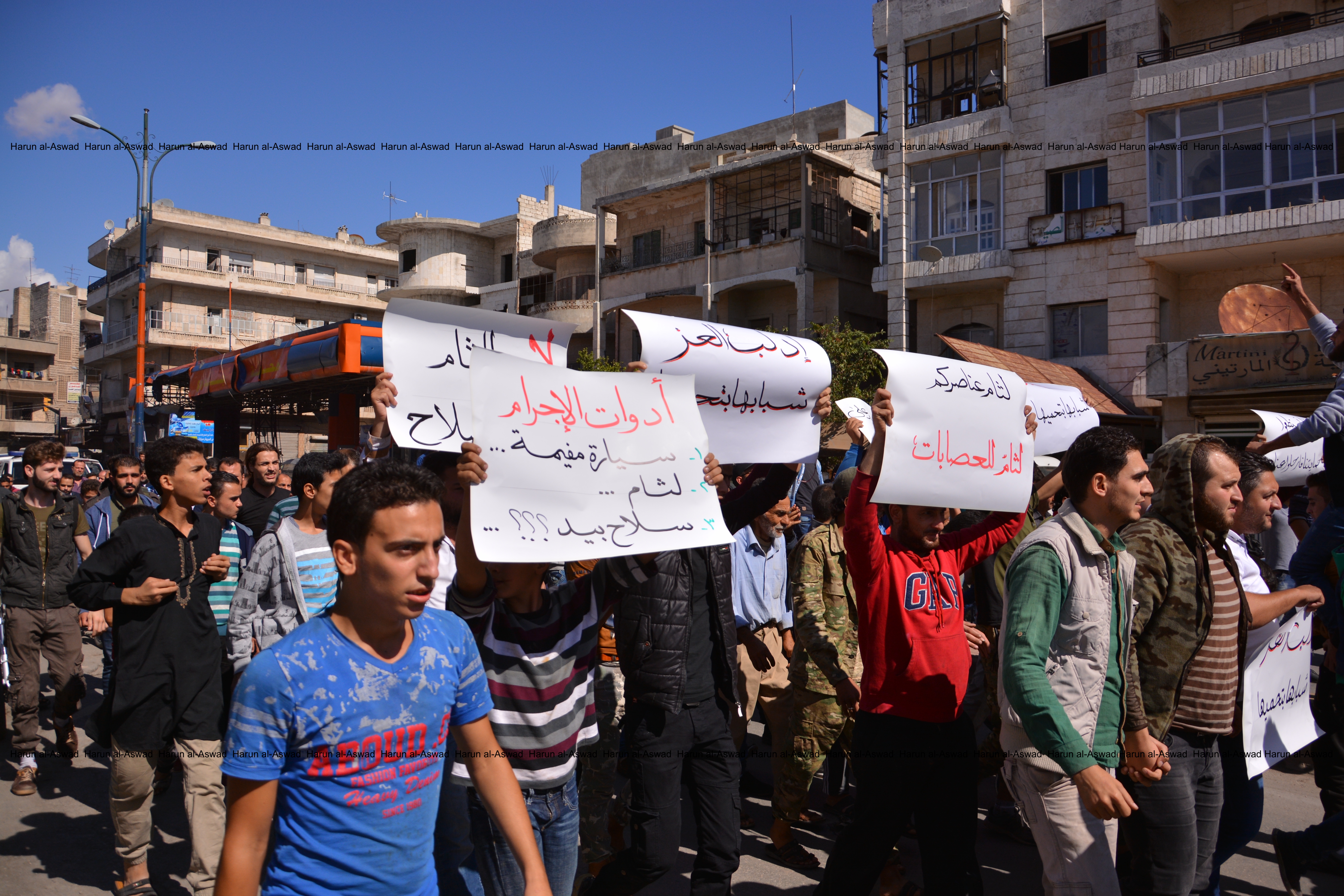 Tuesday 10 October 2017 at 12:55 | A demonstration in Idlib, northern Syria, against the Tahrir al-Sham group, after a gold merchant in the city was theft and killed.