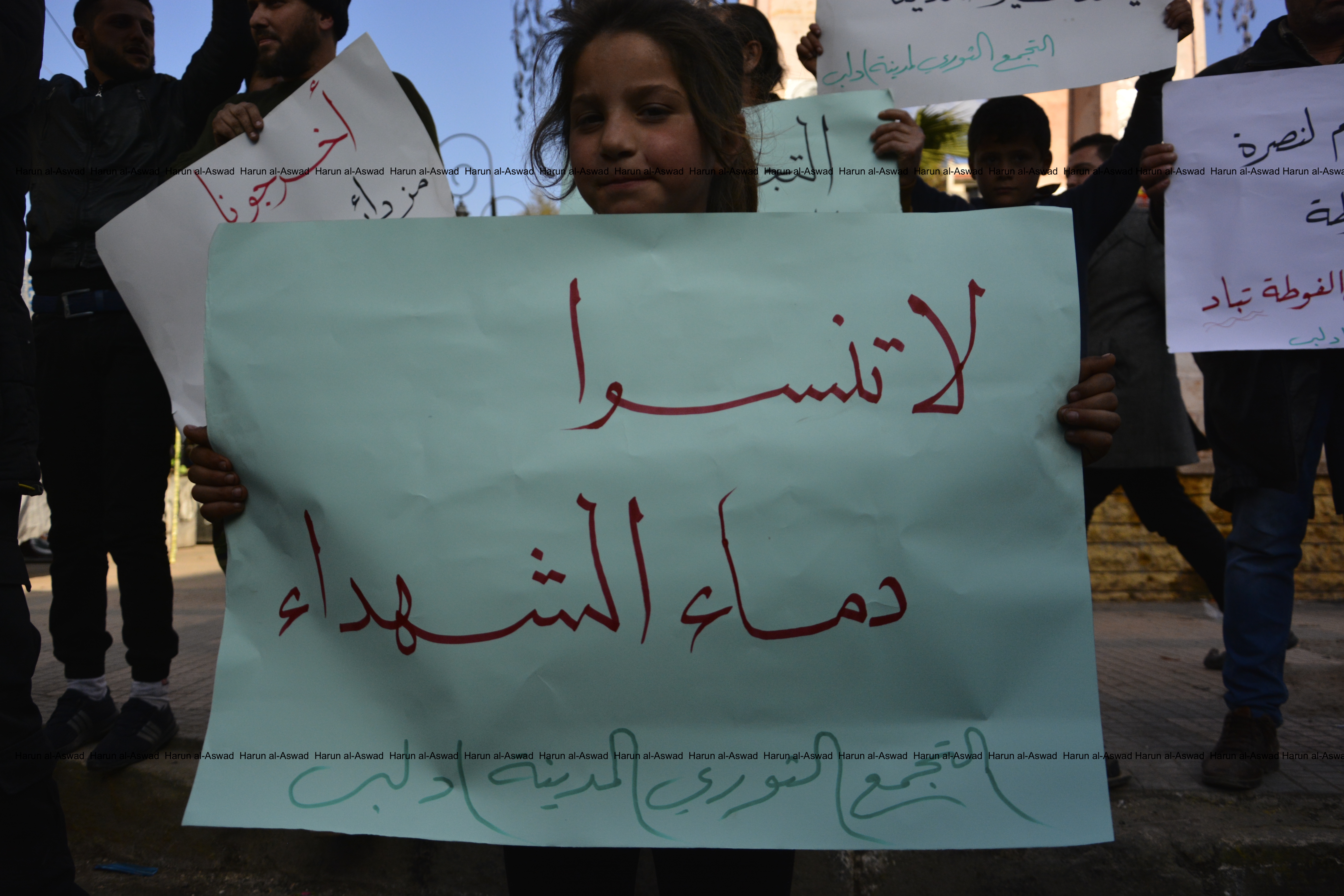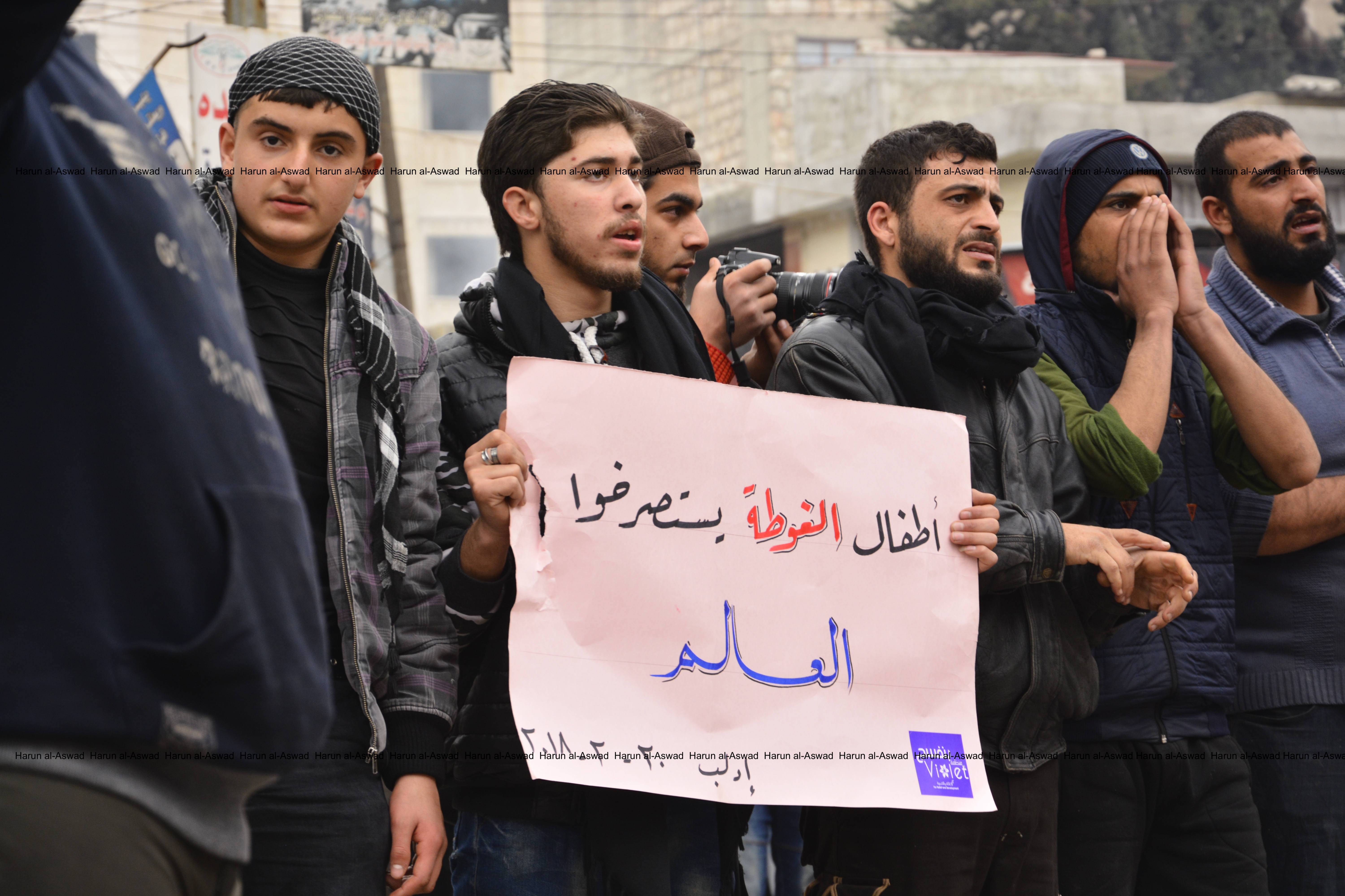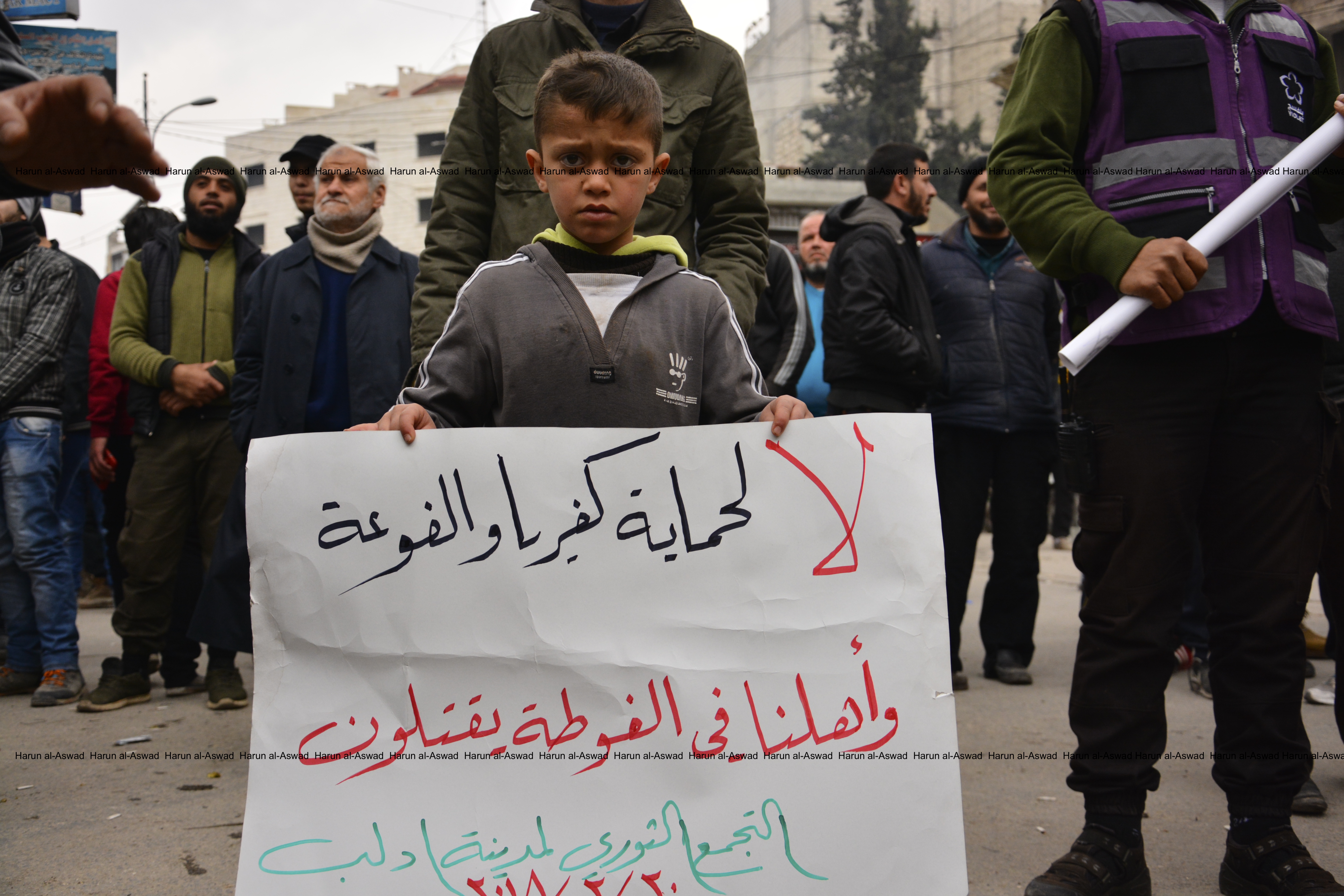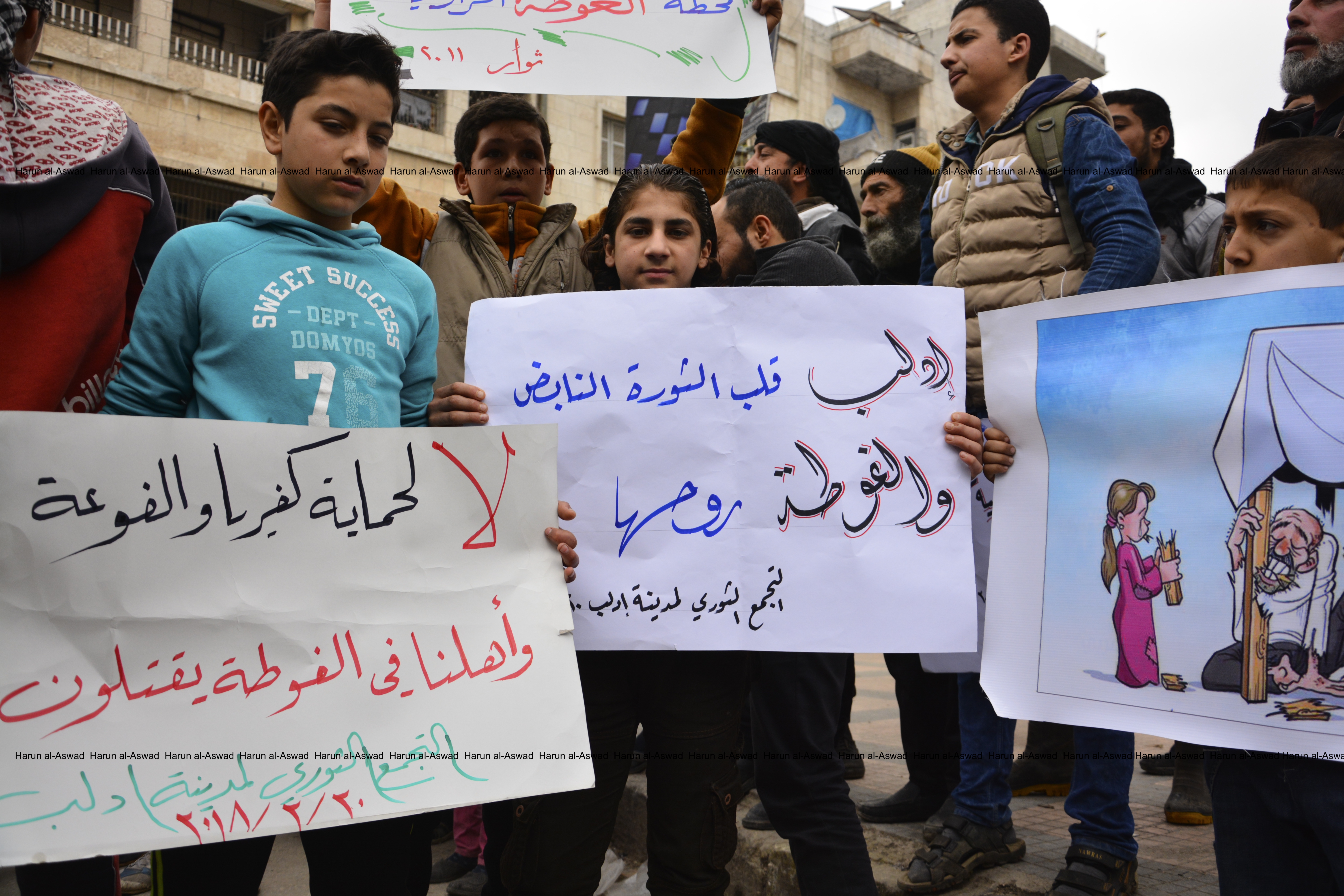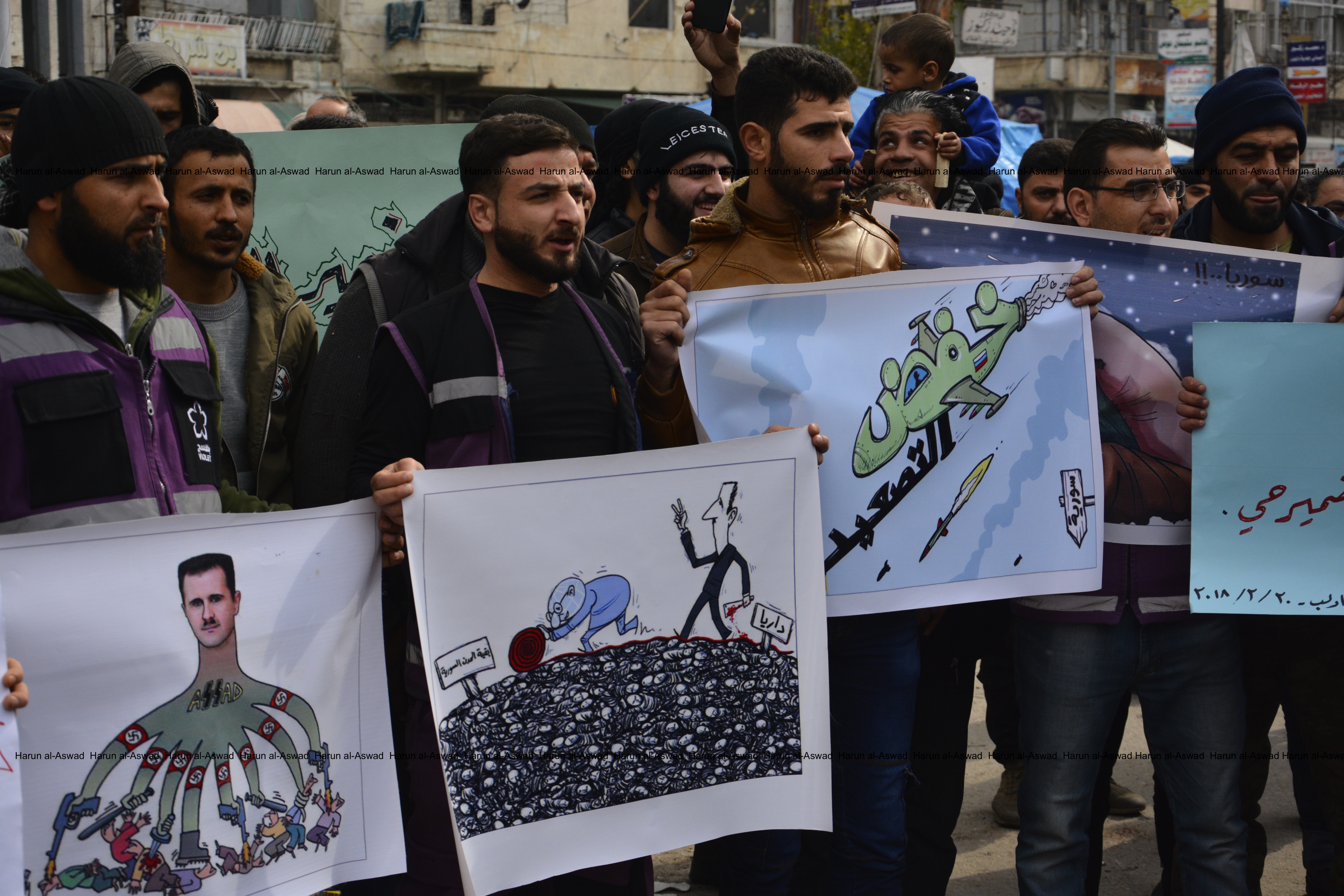 24 Feb 2018 | A demonstration in Idlib, northern Syria, in solidarity with the opposition-held Eastern Ghouta region, east of Damascus, which is being bombed by forces loyal to Syrian President Bashar al-Assad.
