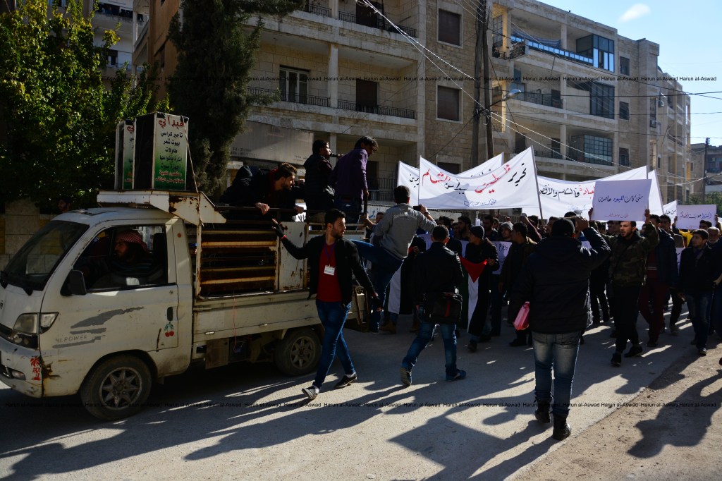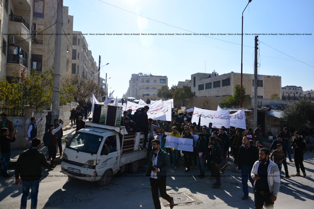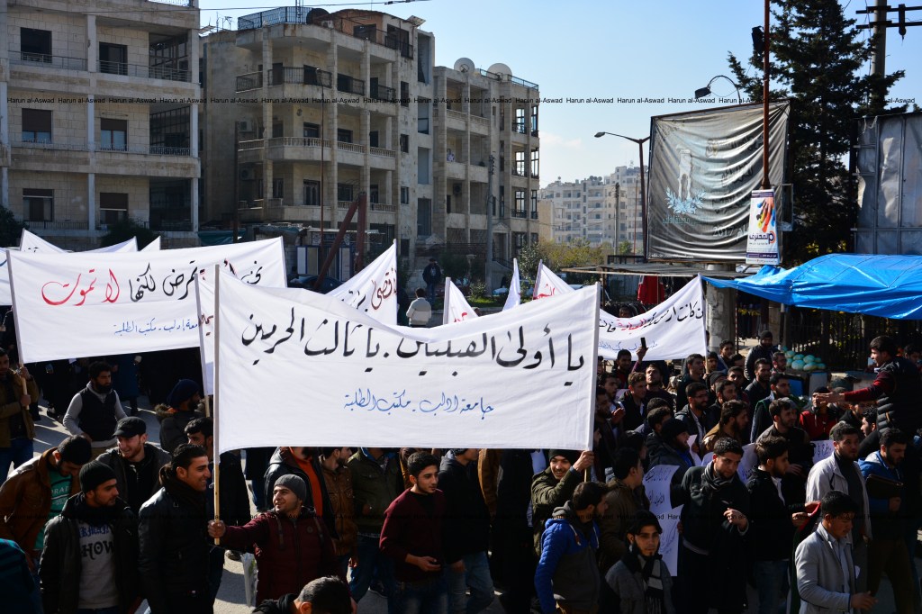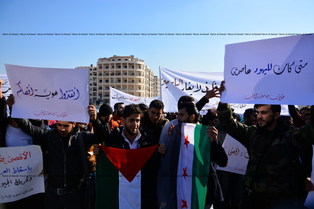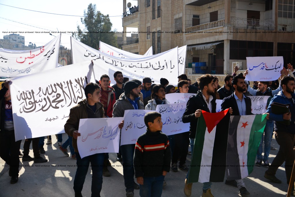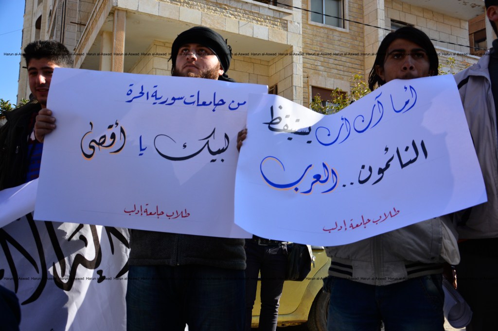 Saturday 9 December 2017 at 12:59 | Students from the University of Idlib, northern Syria, in a protest calling on the Arabs to regain control of Palestine from Israel
