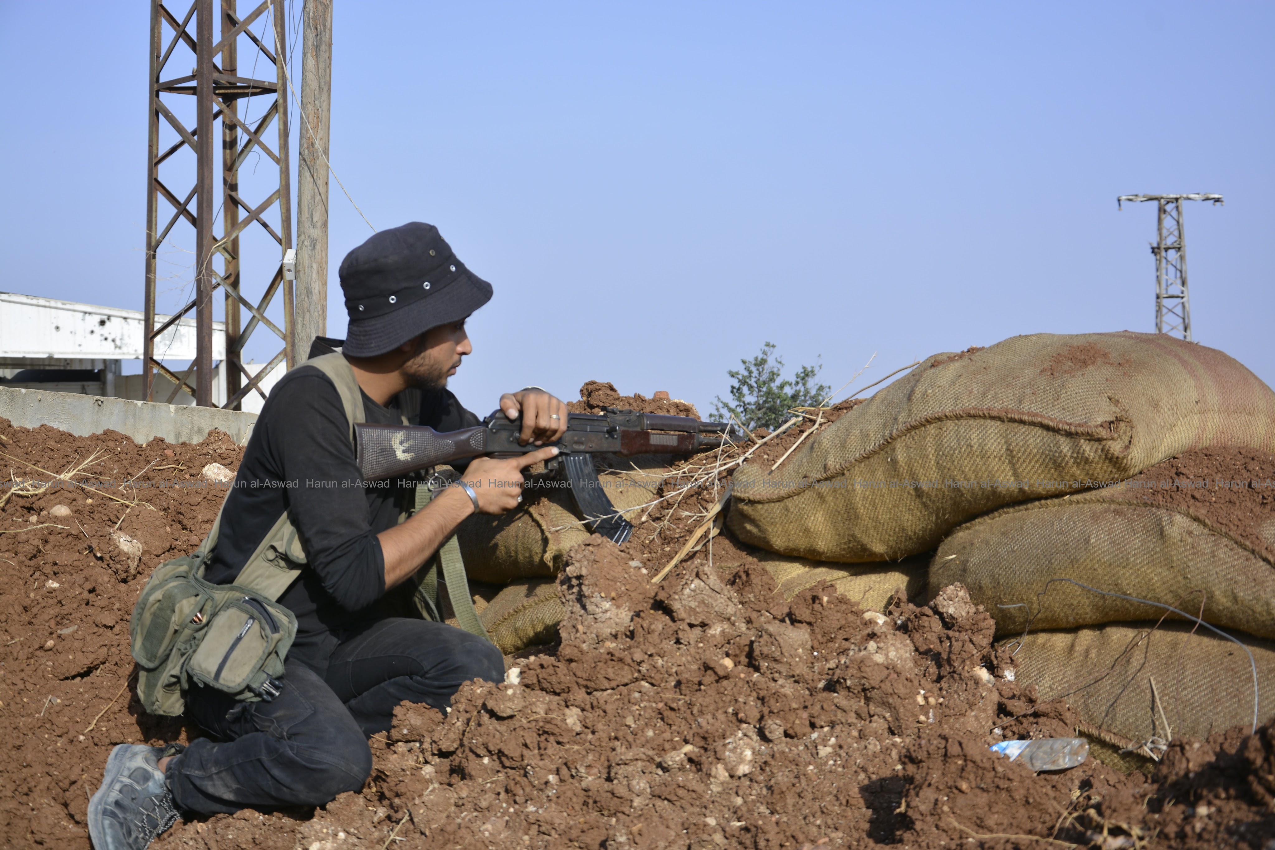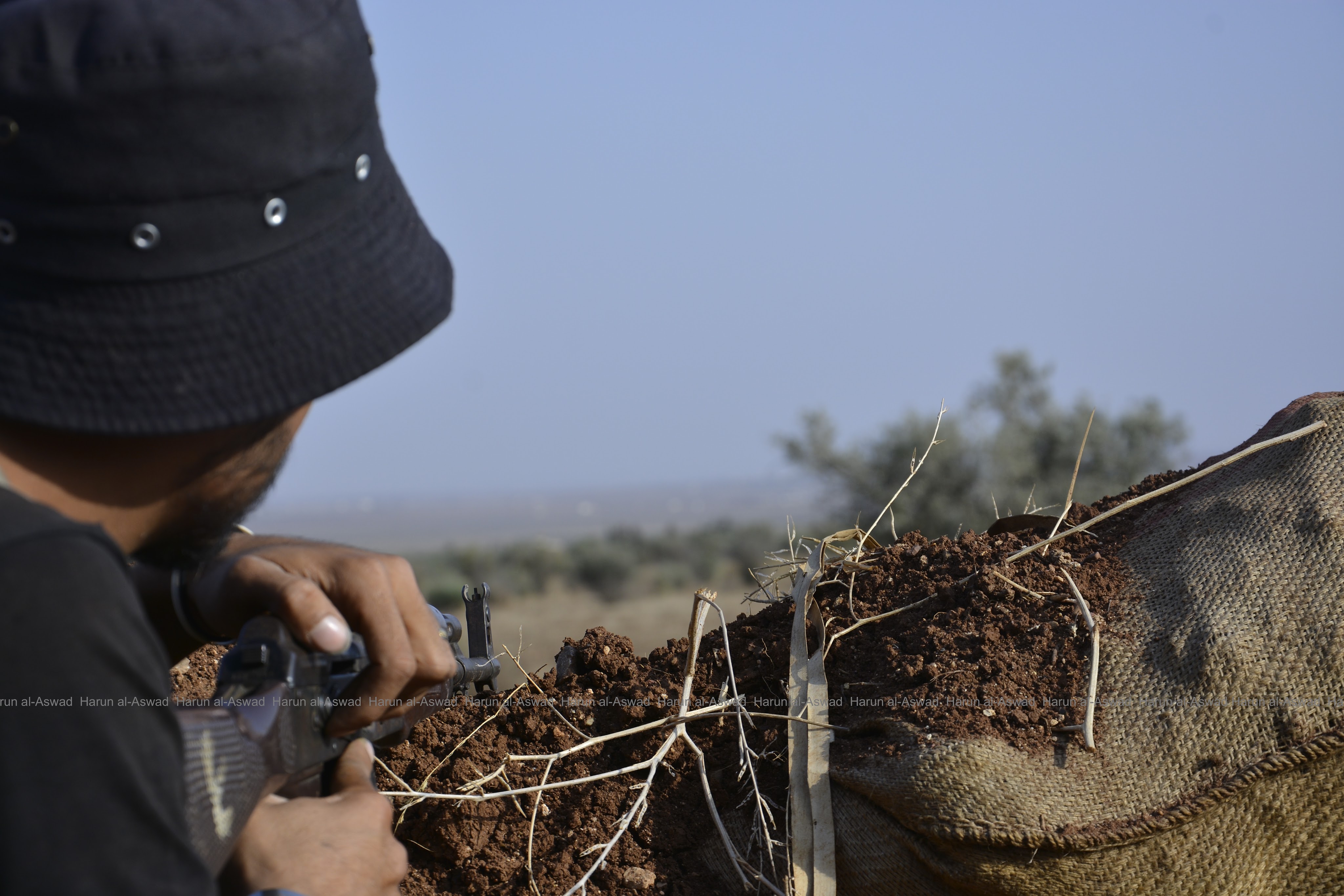 Syrian rebels on a front opposite the Russian-backed Syrian regime forces in the north of Aleppo canton, northern Syria, on 19 October 2018.